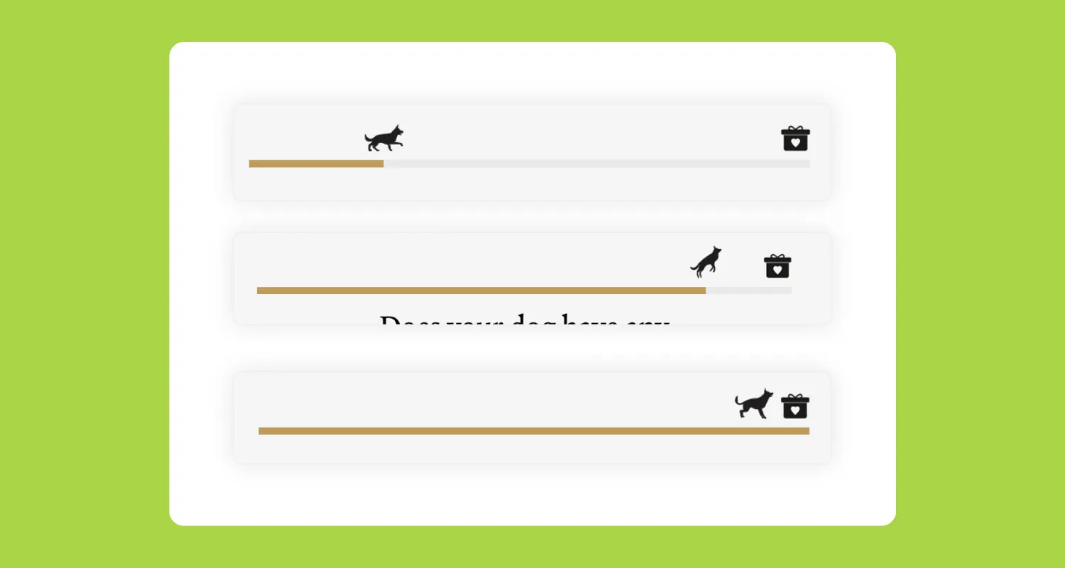Add a progress bar as a visual cue to reassure users they’re on track. For example, as quiz takers move through each step of Farm Hounds’ quiz, a cartoon pup makes its way toward a gift box. It’s a small creative detail that reflects the brand’s playful tone and keeps the experience light.