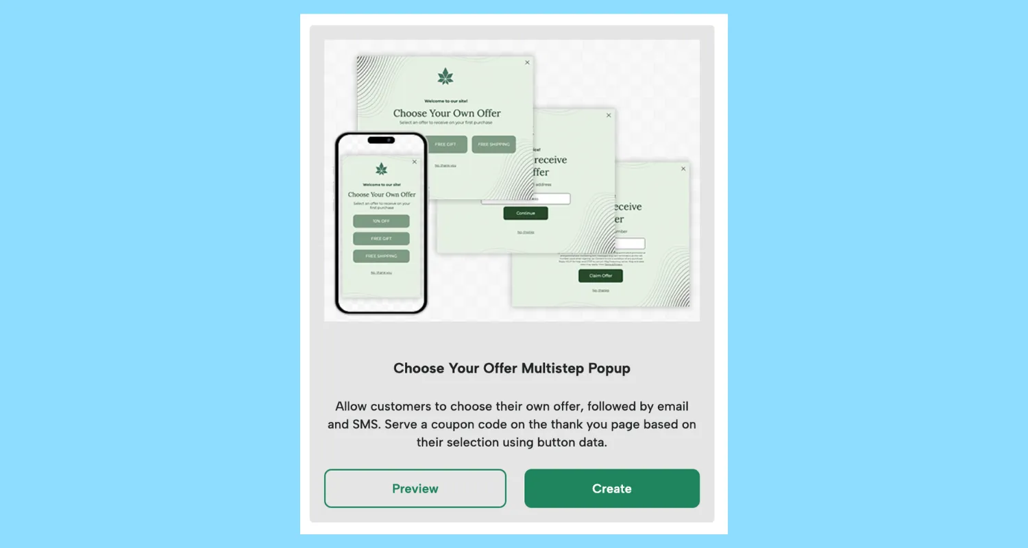 A brand new Theme just dropped and it's a fun one: choose your offer! Give your uses a chance to pick their own offer "10% or Free Shipping" or really anything else. This is a fun way to mix up your offers and also see what your customers are excited about. We can give you metrics on what they choose too and you can of course AB test to make sure it doesn't take your existing conversion rate.