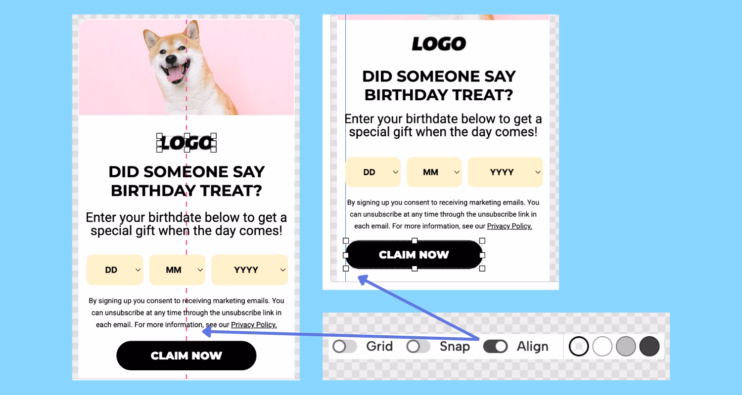 The guides make it easier to place things where you want them, without second-guessing spacing or eyeballing alignment. Choose whether elements line up with each other or with the canvas as you move them around.
