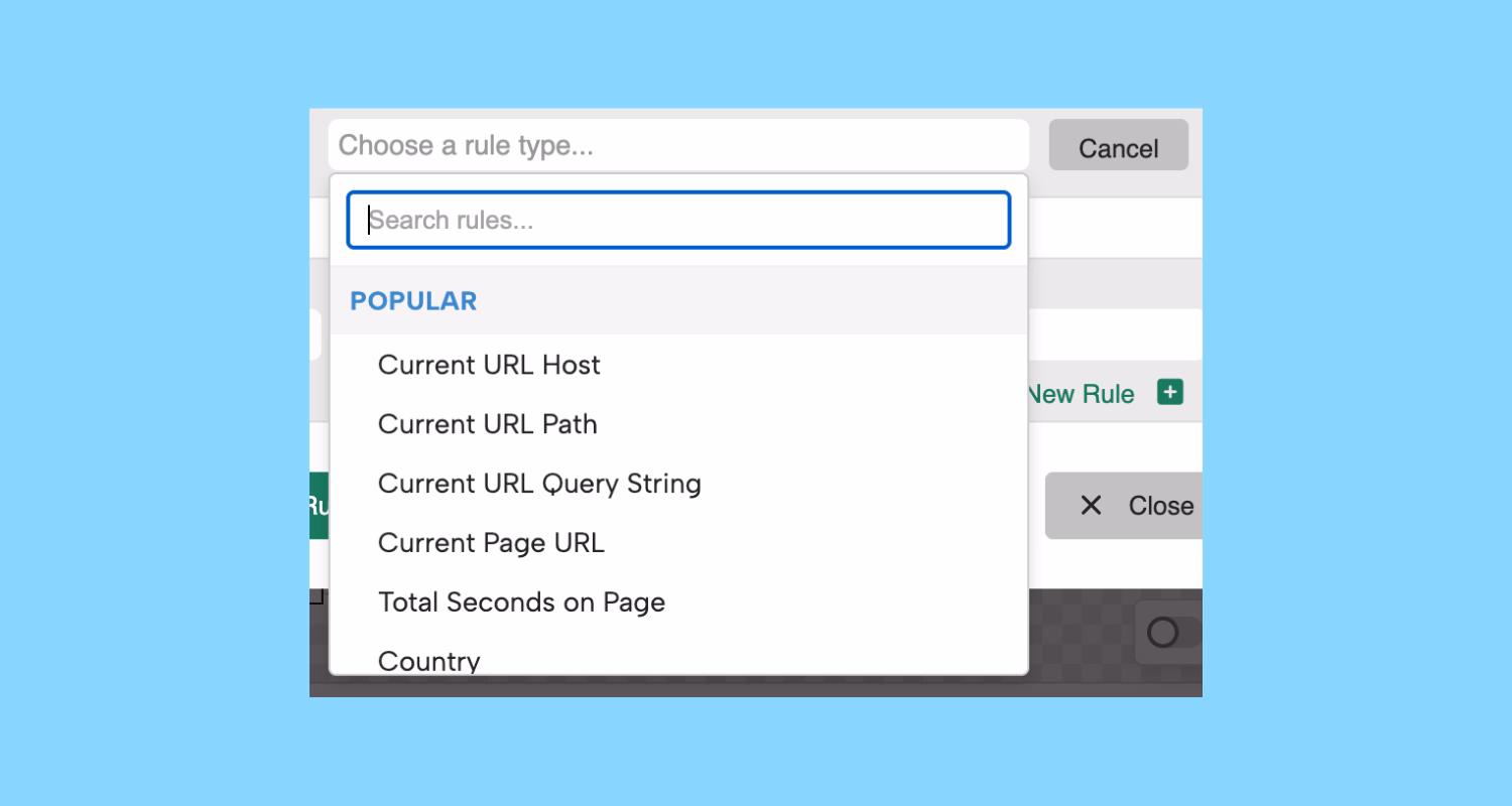 Condition dropdowns in campaign display rules are now searchable.
